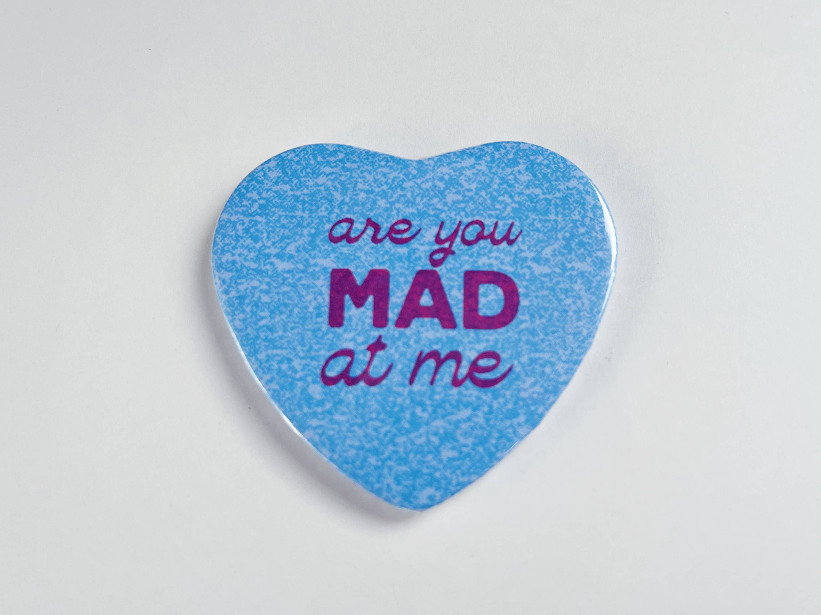 • Are You Mad At Me Heart Shaped 2.25” Button