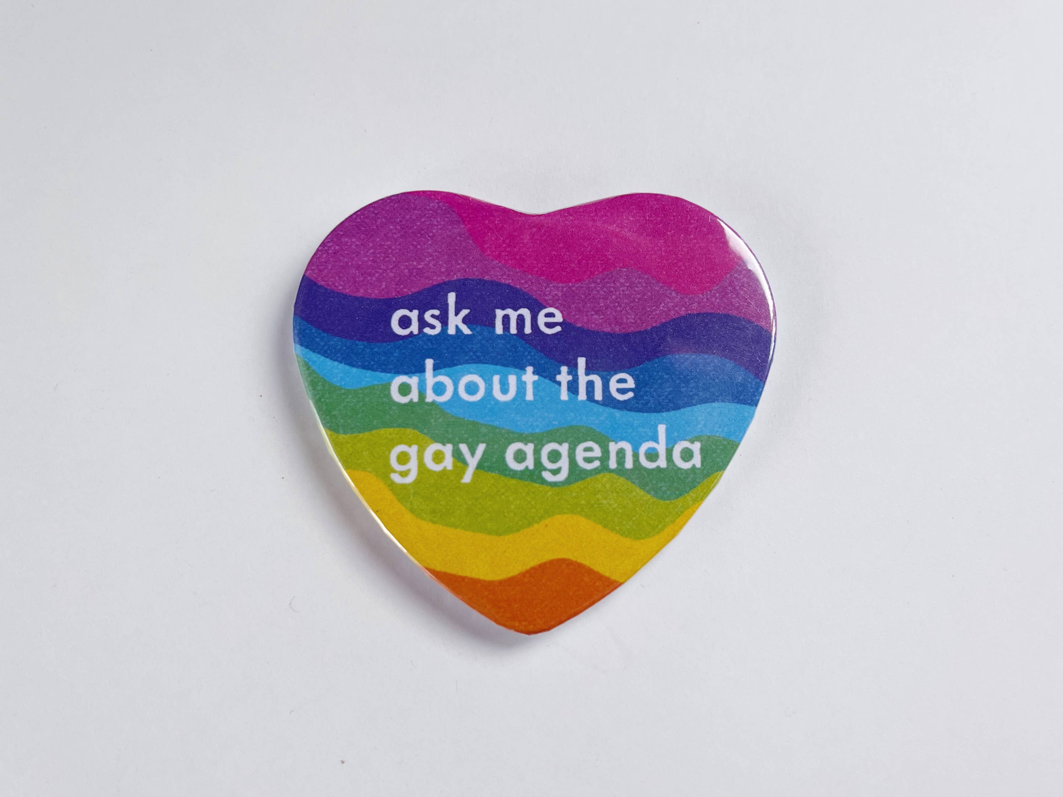 Ask Me About the Gay Agenda Heart Shaped 2.25” Magnet