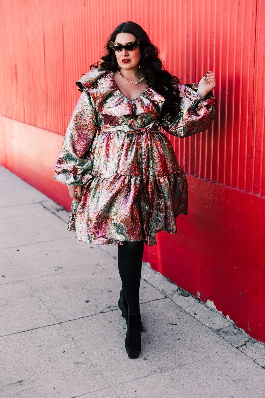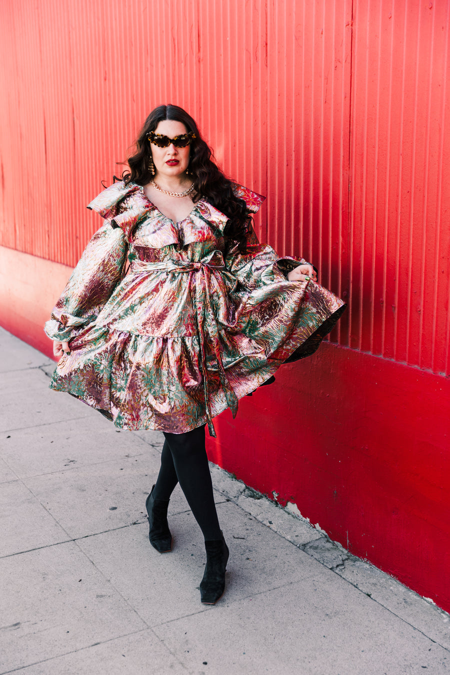 "Bel Canto" literally translates to "beautiful voice," which this day-to-night dress perfectly expresses in this stunning jacquard. With a dramatic oversized ruffle collar, balloon sleeves, and a hemline that dances like a coloratura, you'll love wearing this dress for a soirée with heels or with some sneakers to run errands. Leave a lasting impression - and get your flowers too!
