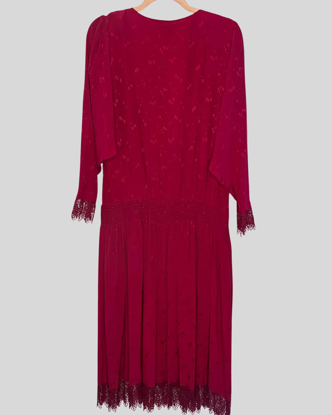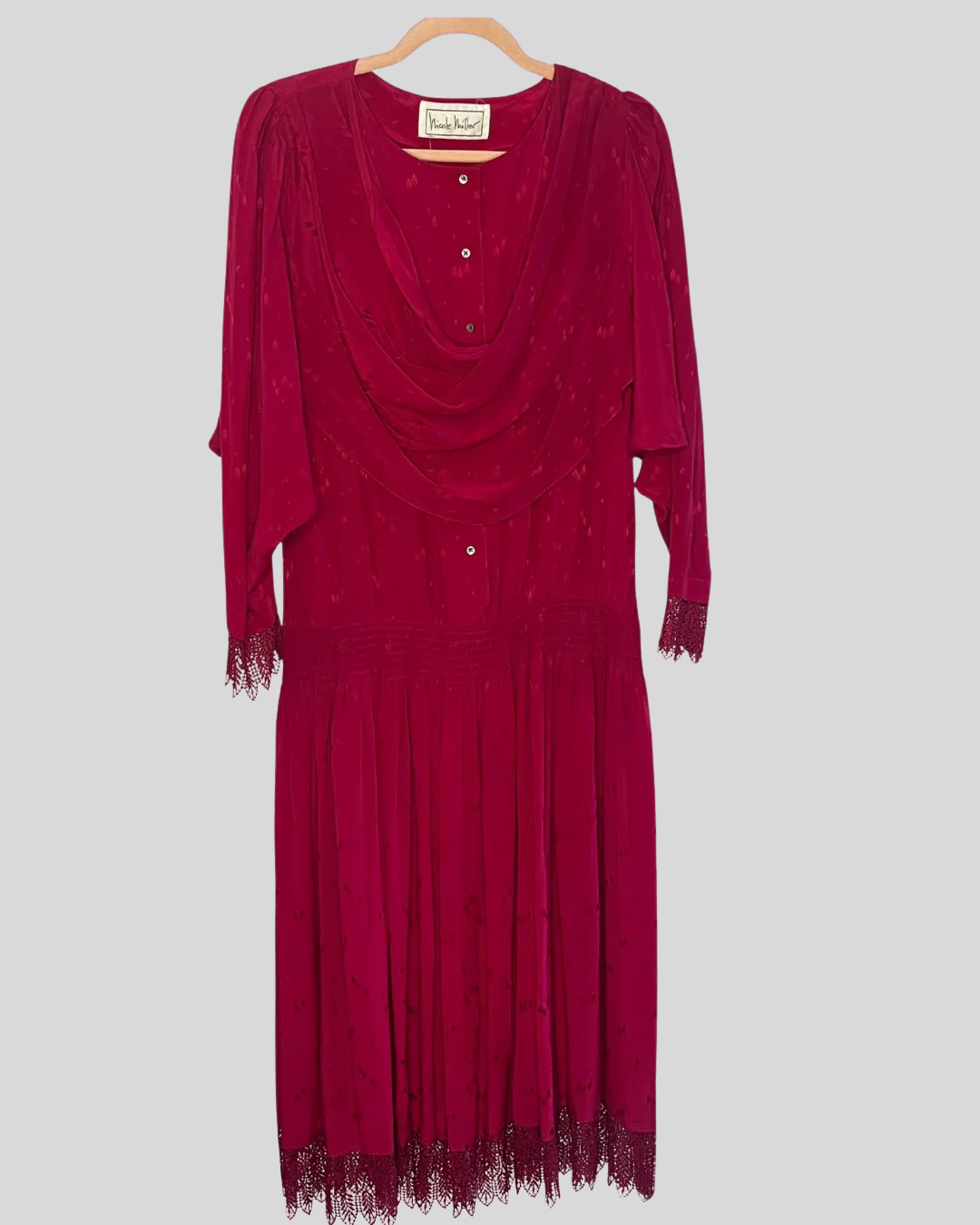 Vintage Nicole Miller Silk Lace Trim Dress in Fuschia (1X)