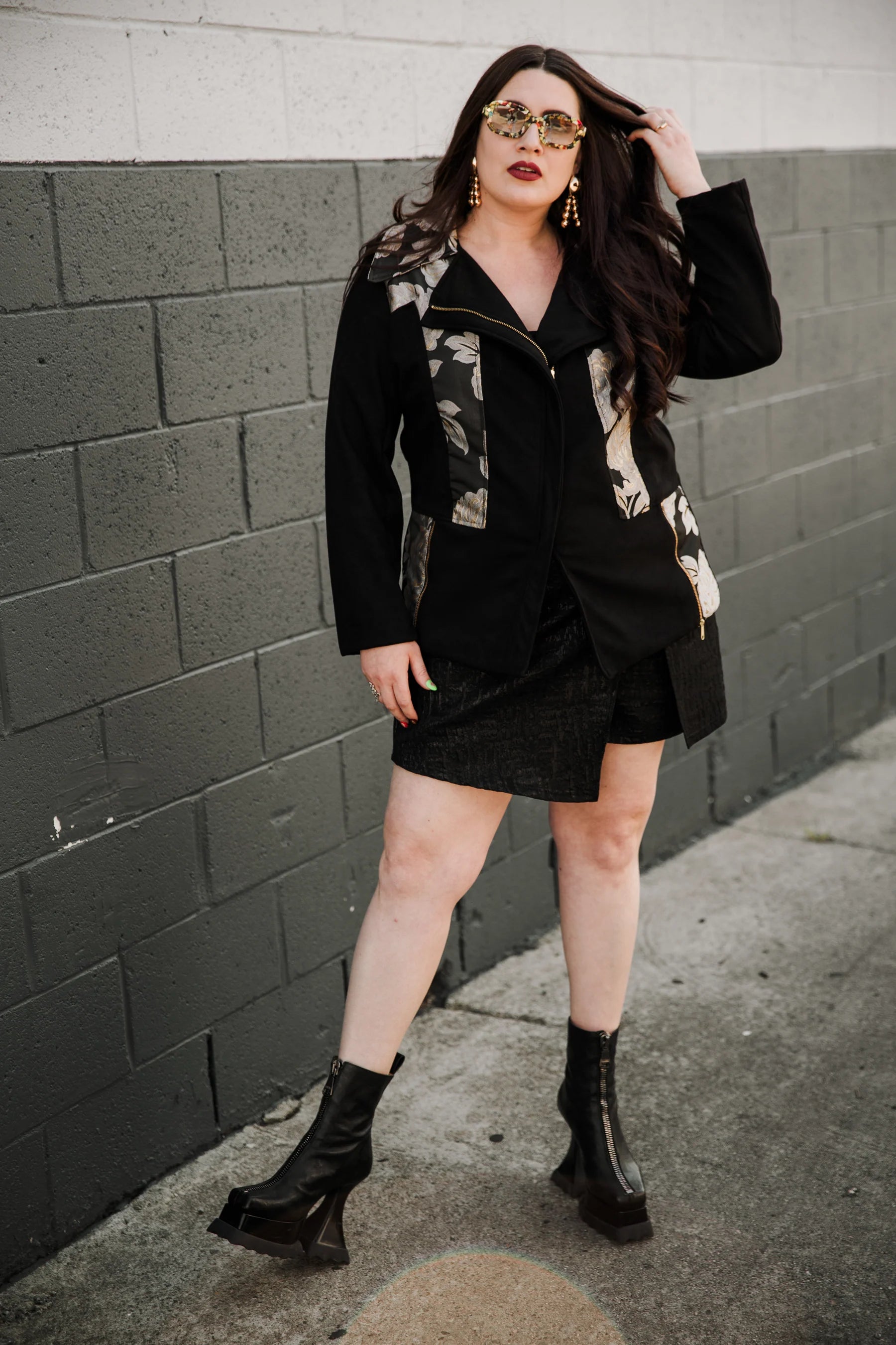 The byVINNIK Moto Jacket features a new-take on a classic staple. Designed with chunky gold YKK zippers and zip-up anti-theft design technology creating bulk-free comfortable pockets for all of your essentials as you strut past your audience. Designed for daily wear as your favorite jacket, this vegan ultra-suede is easily spot-cleaned.